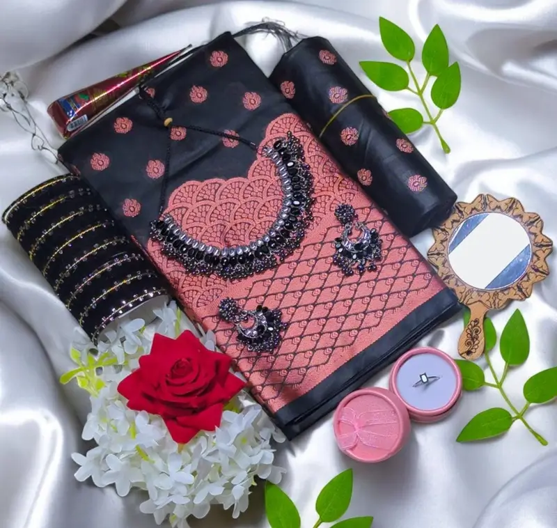 Black Katan saree Gift package.